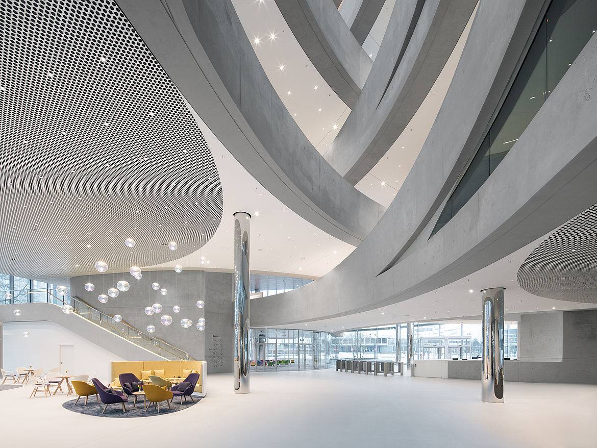 Durch ihre runden Öffnungen charakterisiert, fügt sich die Designdecke LOOP® harmonisch in die unterschiedlichsten Raumkonzepte ein und erweckt dabei einen endlosen, beinah schwebenden Eindruck.