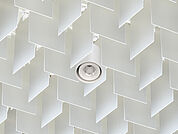 Die multidirektionale Rasterdecke LIVA überzeugt mit einem dynamischen, homogenen Erscheinungsbild. In unterschiedlichen Höhen und Farben kombinierbar, bieten die rechtwinklig zueinander angeordneten Blattlamellen aus Aluminium viele Gestaltungsmöglichkeiten. Die moderne Punktleuchte PUNTEO-J60 fügt sich dabei perfekt und dezent in die Rasterdecke ein und garantiert ein ansprechendes Raumerleben.