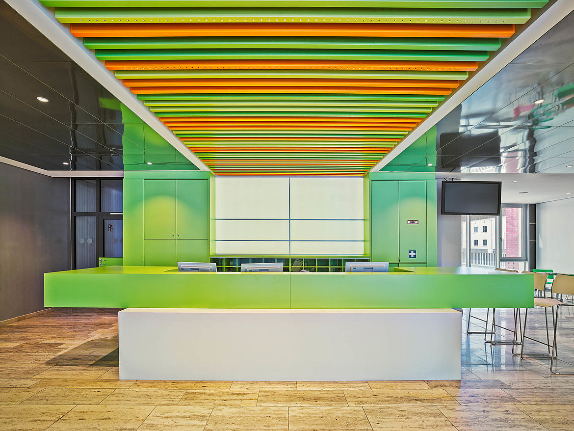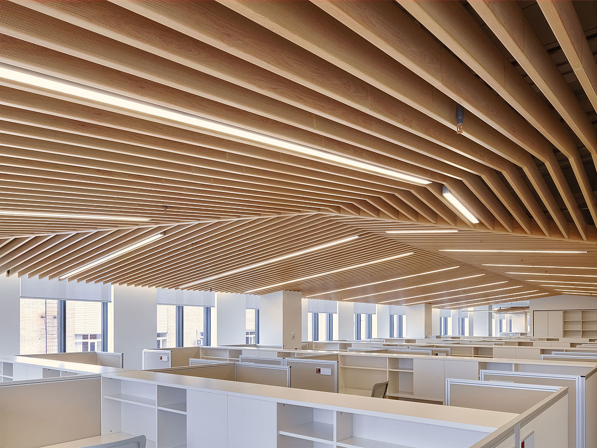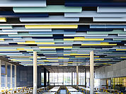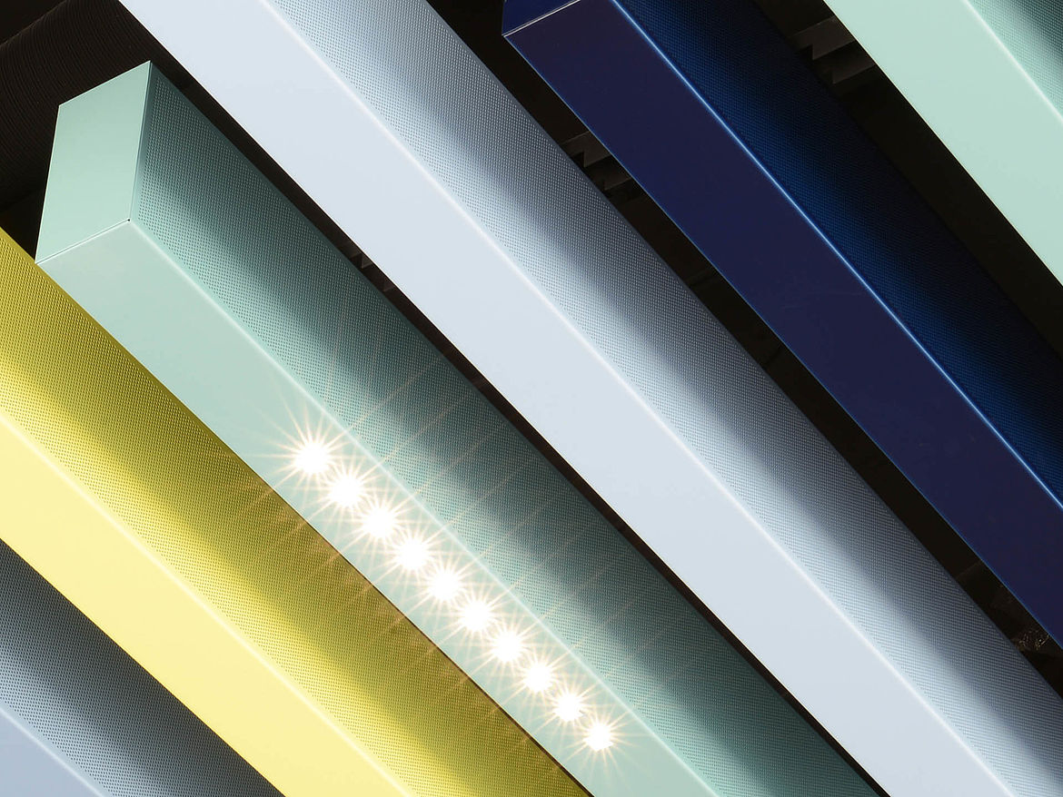 Die lineare, offene Lamellendecke bietet vielfältigen Gestaltungsspielraum und lässt sich auch als Kreuzraster oder als Kühldecke POLYLAM dur-COOLTEC einsetzen. Durch Anzahl, Größe und Perforation der Lamellen sowie unterschiedlichen Füllungen als Absorptionsstoff kann POLYLAM hohen akustischen Anforderungen gerecht werden. Bedruckt in Holzoptik (dur-GRAPHICS) ergeben sich ungeahnte kreative Möglichkeiten.