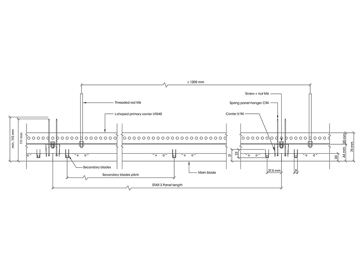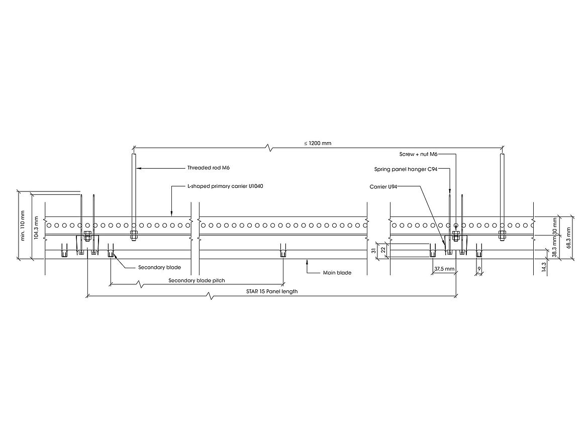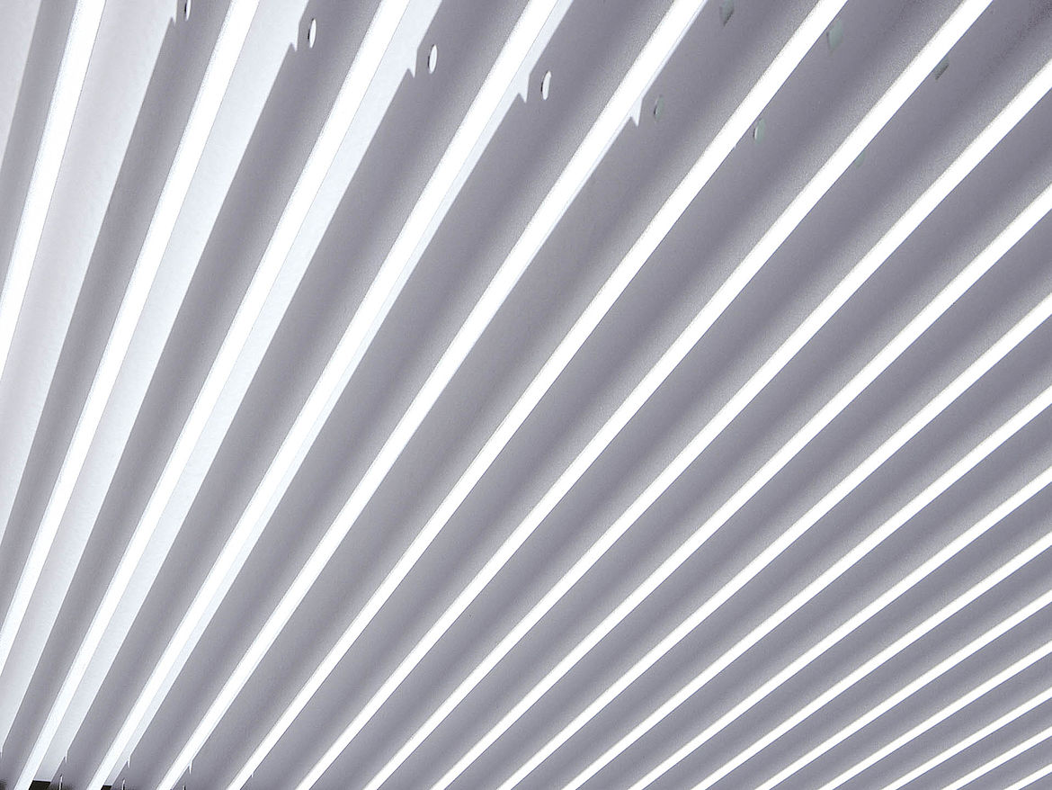 Die offene Rasterdecke STAR setzt Akzente in jeder Architektur. Die Rasterdecke kann horizontal oder vertikal verlegt werden. Die Kombination der Lamellen und die klar definierten Kanten erzeugt ein einzigartiges Erscheinungsbild. Werden die Lamellen verschiedenfarbig lackiert, entstehen in Verbindung mit den zurückversetzten schwarzen Traversen vollkommen neue Deckendesigns.