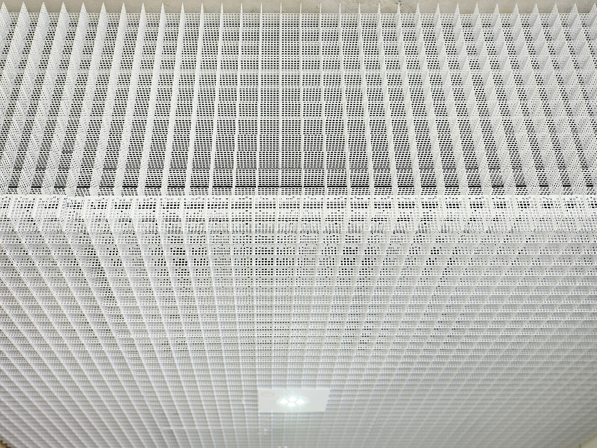 Die „geflochtene“ Metallrasterdecke TICELL ist ein Einstegraster, das jedem Projekt ein individuelles Design von metallischer, moderner Leichtigkeit verleiht. Die Oberfläche der Aluminiumlamellen wird durch einen speziellen Prozess so strukturiert, dass die Stanzkanten den Lichtfluss reflektieren und so für eine einzigartige Optik sorgen.