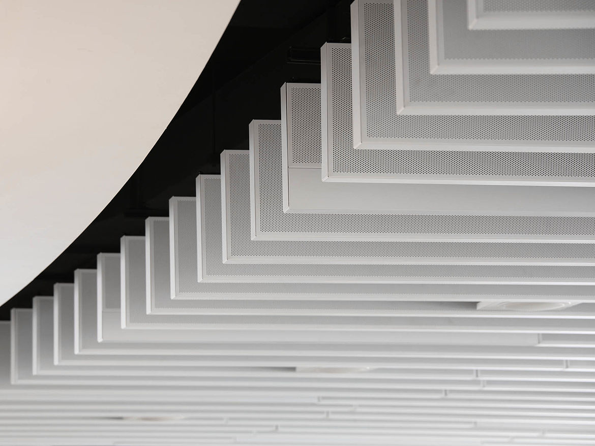 The aesthetically appealing ceiling-light combination comprising the POLYLAM vertical baffle system and integrated linear luminaires delivers an almost unlimited range of design options. All versions of linear lighting are efficient and powerful. A great combination formed by pairing acoustic properties and the scope for printing patterns on the baffle ceiling.