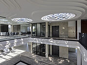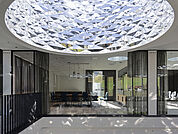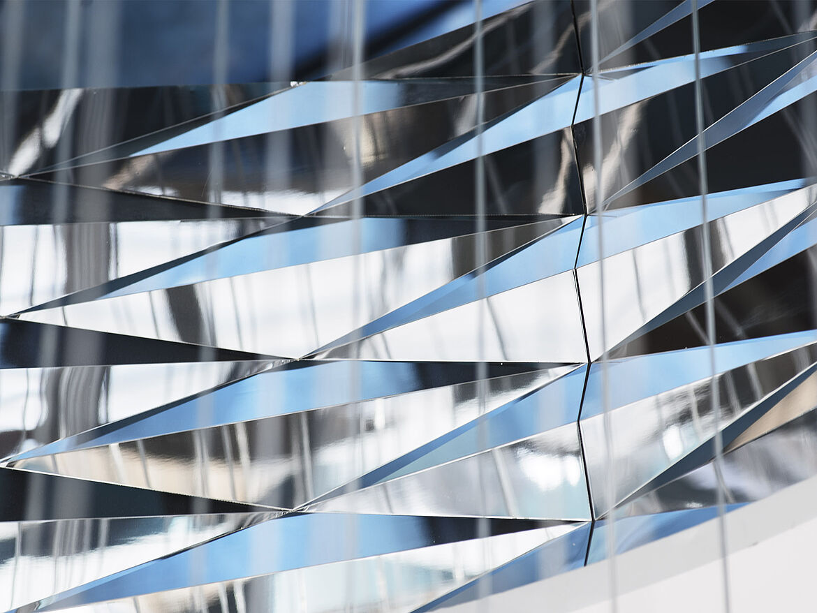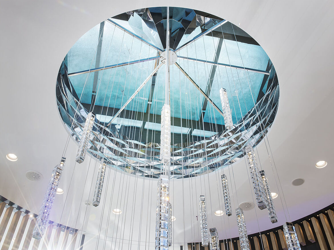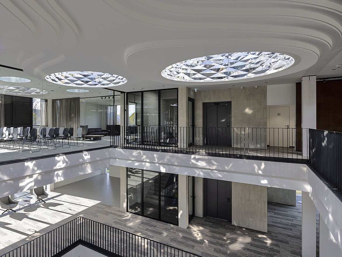 The DIAMOND TUBE daylight system does not need to be regulated with blinds etc., but still brings a lively dynamic into the room. Consisting of numerous isosceles triangular elements in highly reflective aluminium, it effectively directs incoming daylight into the room.
