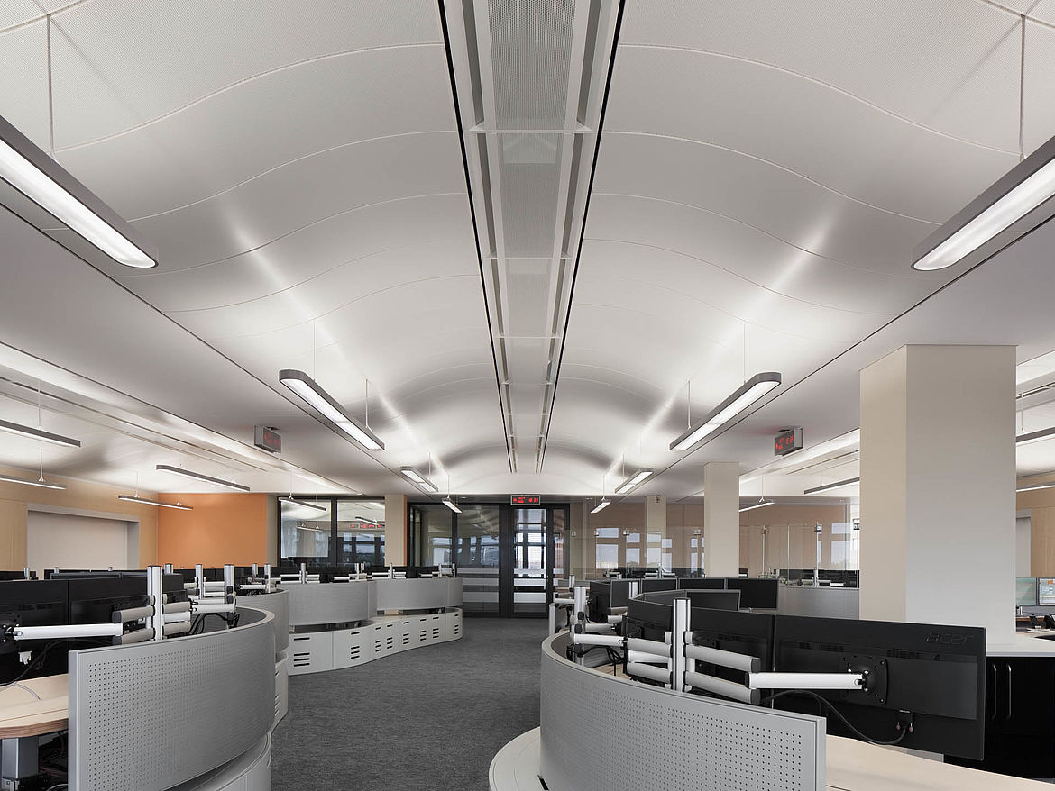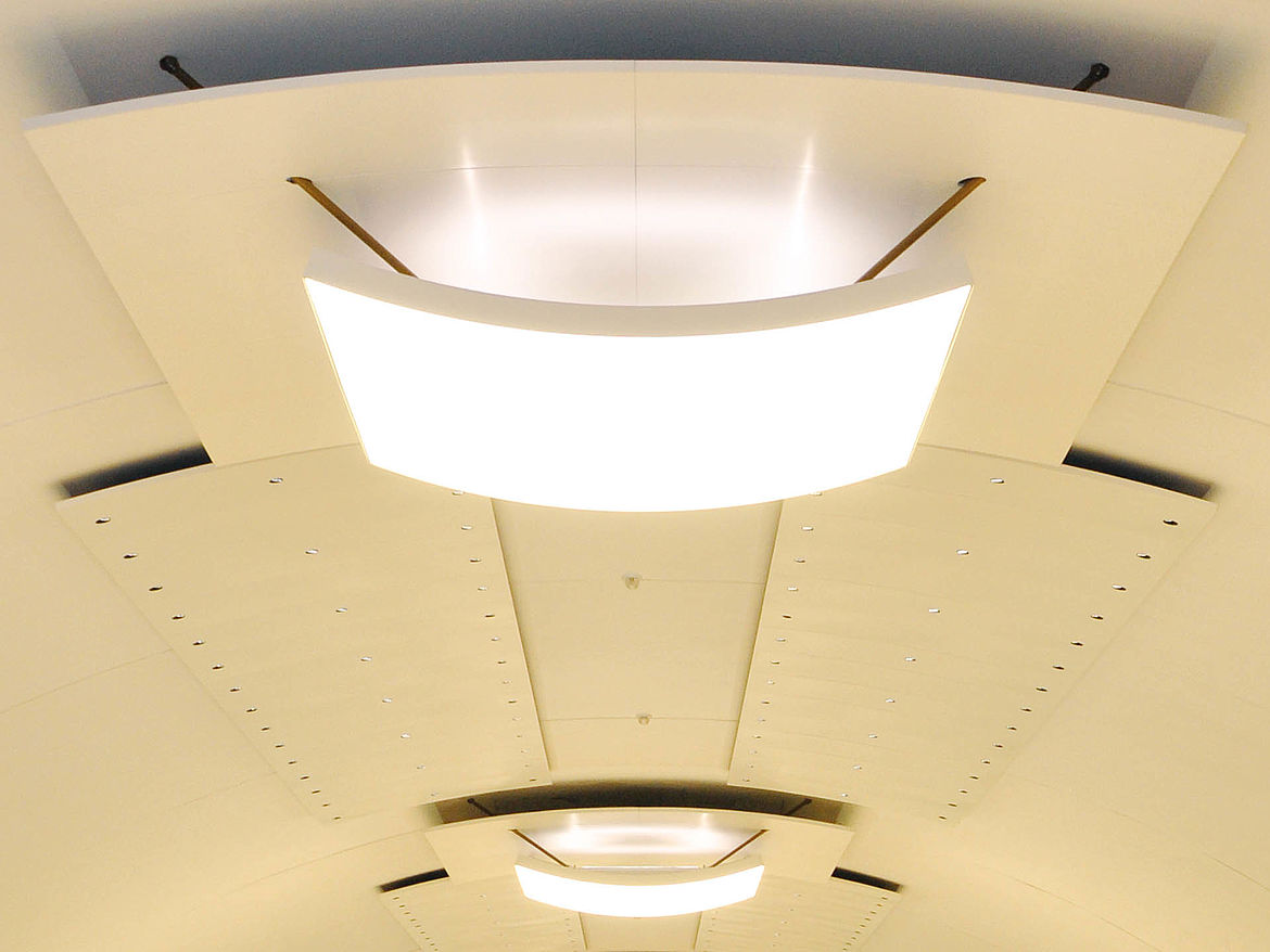 DOMUS curved ceilings emphasize the architecture where cool elegance is required. These timeless systems create a feeling of open space, particularly in rooms with low ceilings. The DOMUS ceiling elements are available in concave, convex or parabolic shapes. The choice of the suspension influences the function as well as the joint pattern.