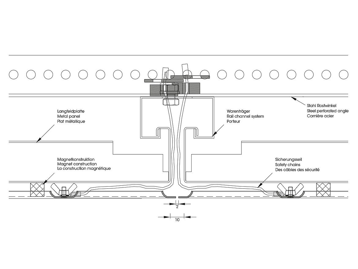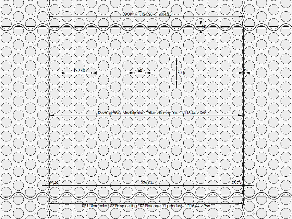 Acoustically effective in the standard version due to the false ceiling as an S7 rectangular metal panel.