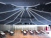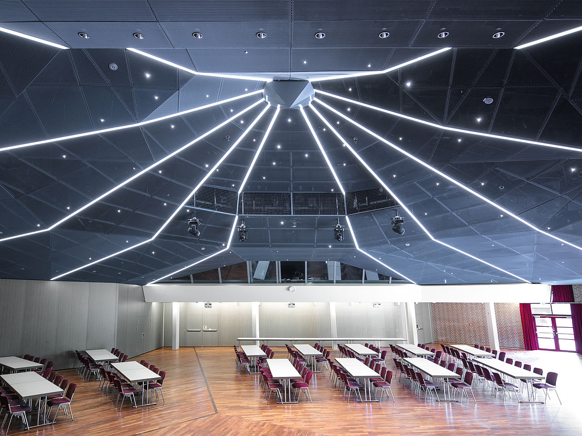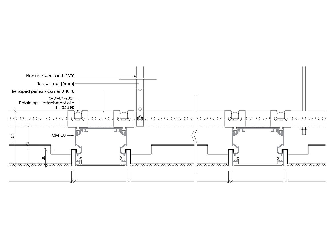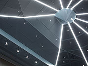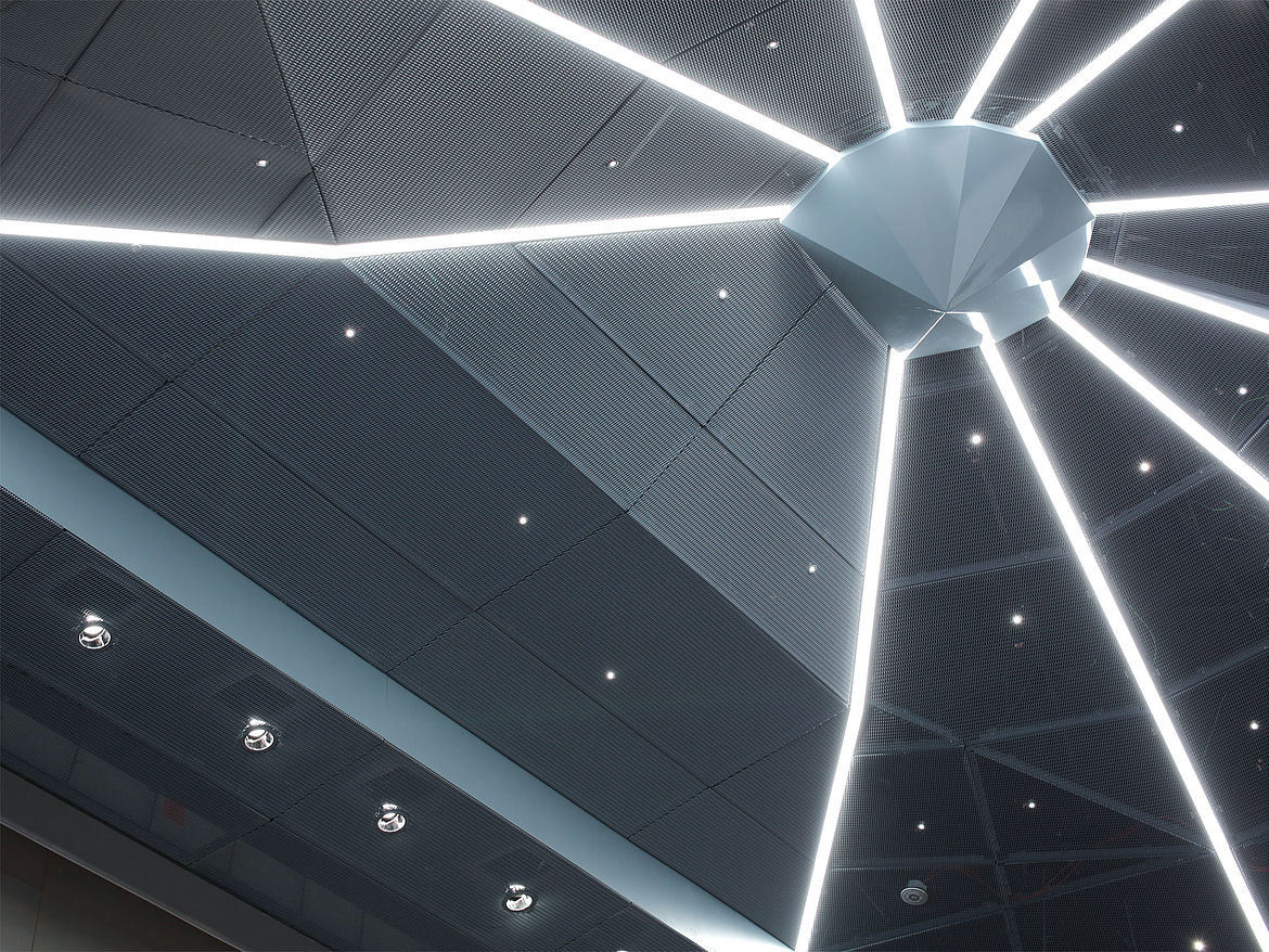 S-OMEGA RHOMBOS is a linear expanded metal hook-on system and it is supported by the integrated OMEGA lighting channels. The versatile ceiling-lighting combination is particularly well suited to representative applications with a flexible range of design options. It is also easy to demount, without requiring tools.