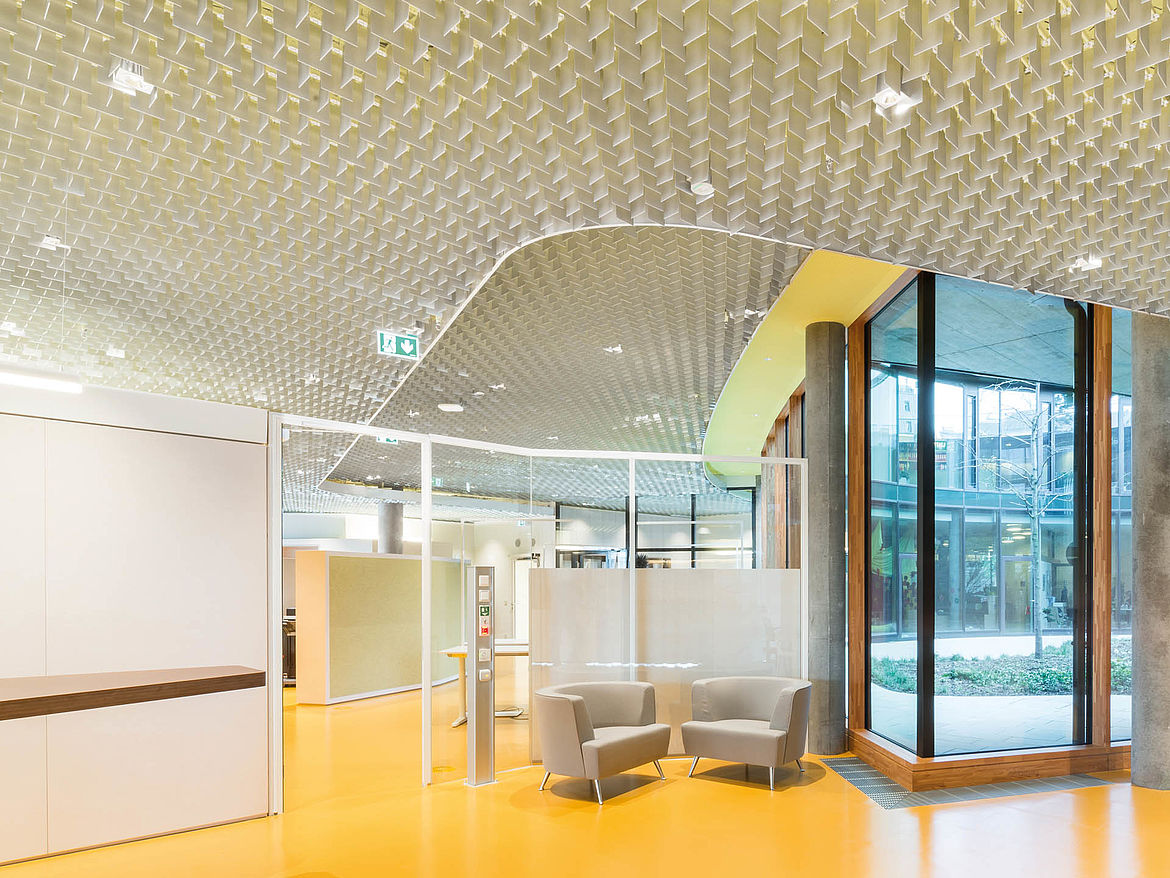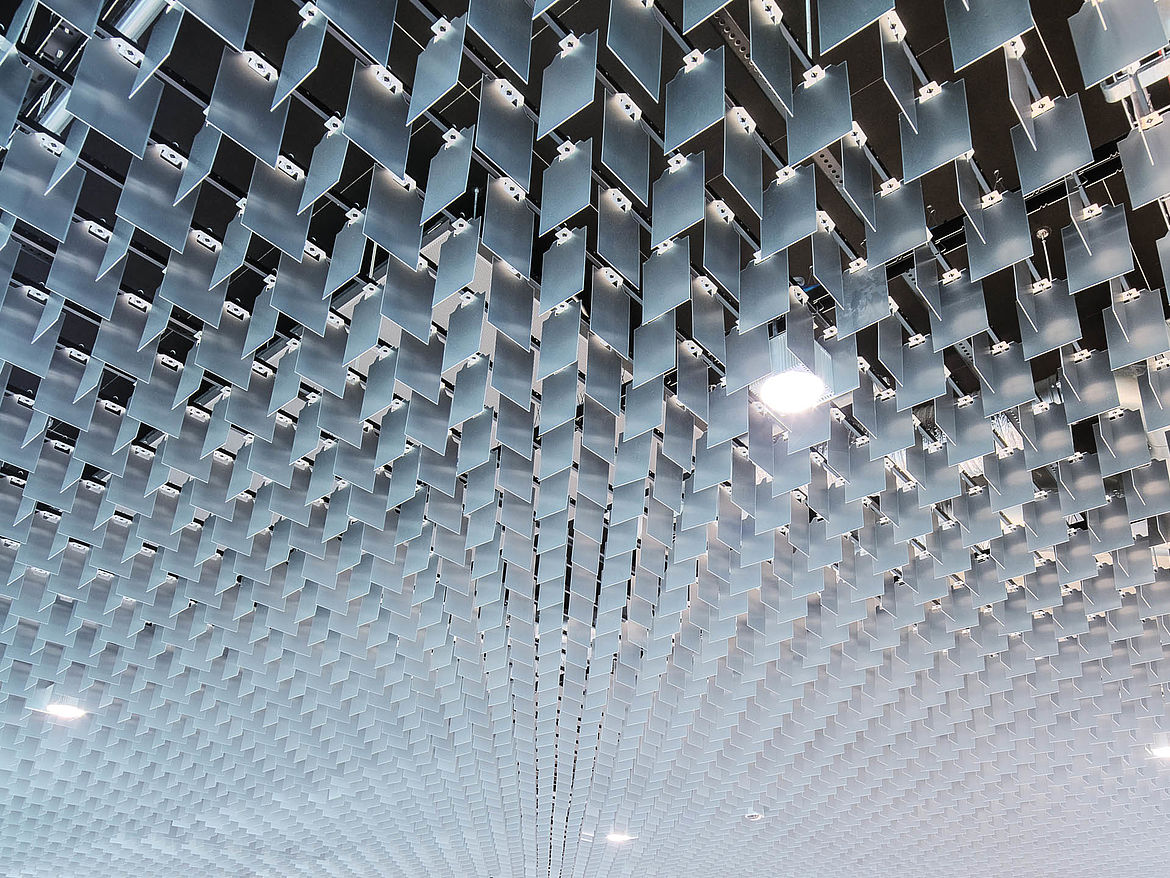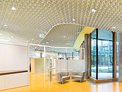 The LIVA multidirectional open-cell ceiling has a compellingly airy, homogeneous appearance. Combinable at different heights, the aluminium louvres, arranged at right angles to one another, create many design options. This generates a dynamic appearance of the ceiling in order to set individual accents.