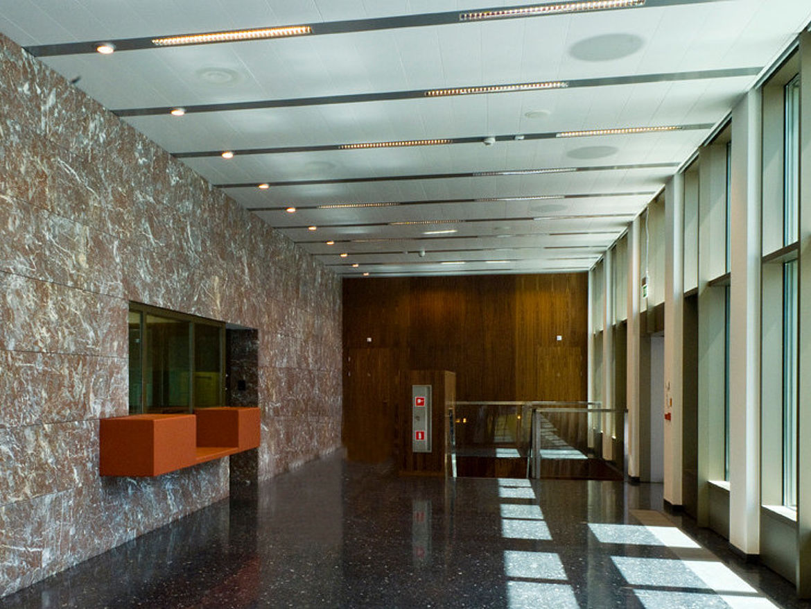 The S5 linear C-channel system has a visible, parallel sub-structure. This visible sub-structure also enables rooms to be divided up flexibly. Where required, movable partition walls are secured to the parallel C-channel beams. Optionally, the system can be obtained with hingeable and movable properties.