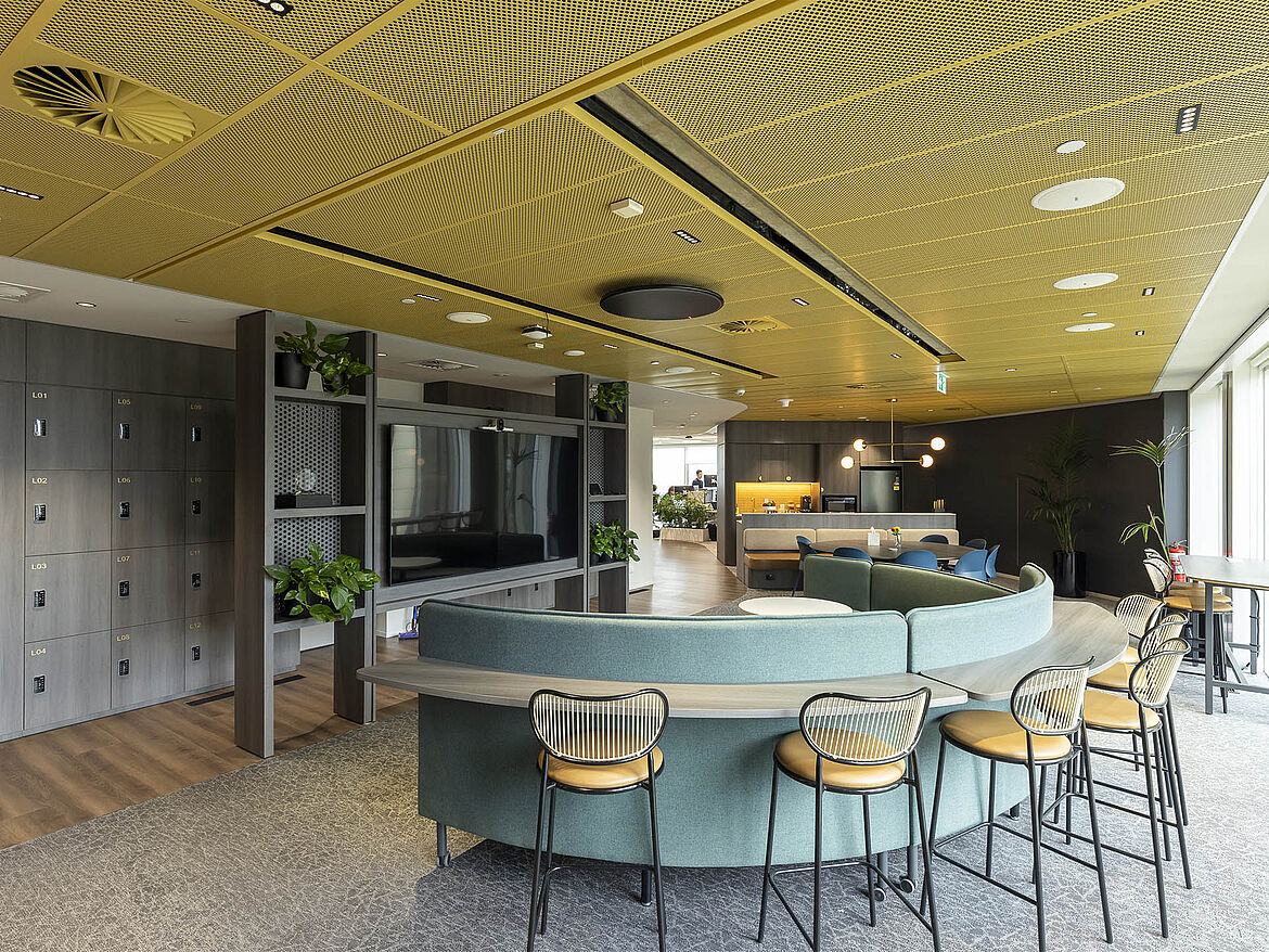 The S7 metal ceiling can be used in a versatile range of ways. Even, if so desired, in protected external spaces. This rail channel system is especially well suited to sales areas or other applications where signage needs to be integrated in the ceiling. Due to its robust design it is also suitable for areas exposed to suction and impact forces.
