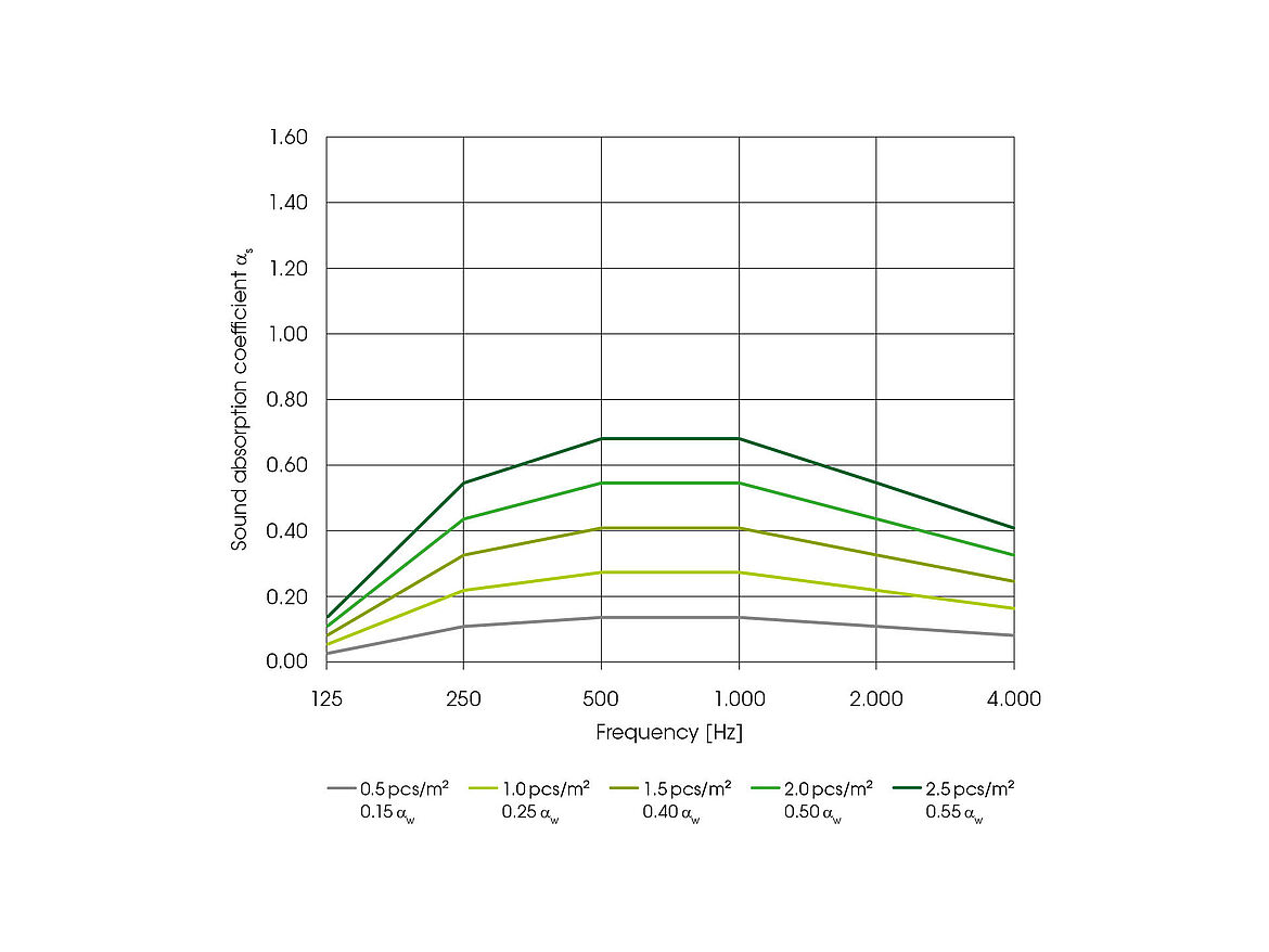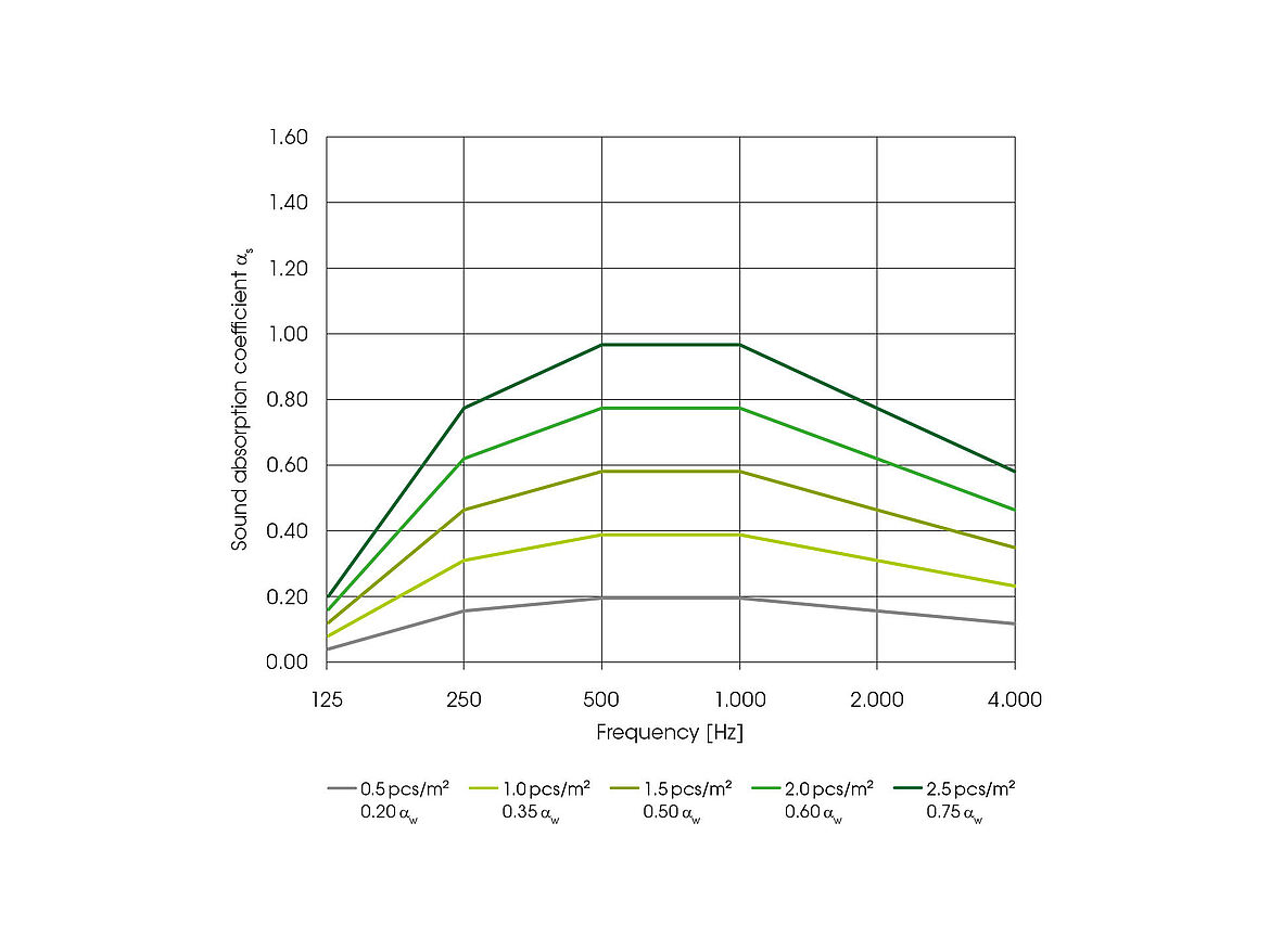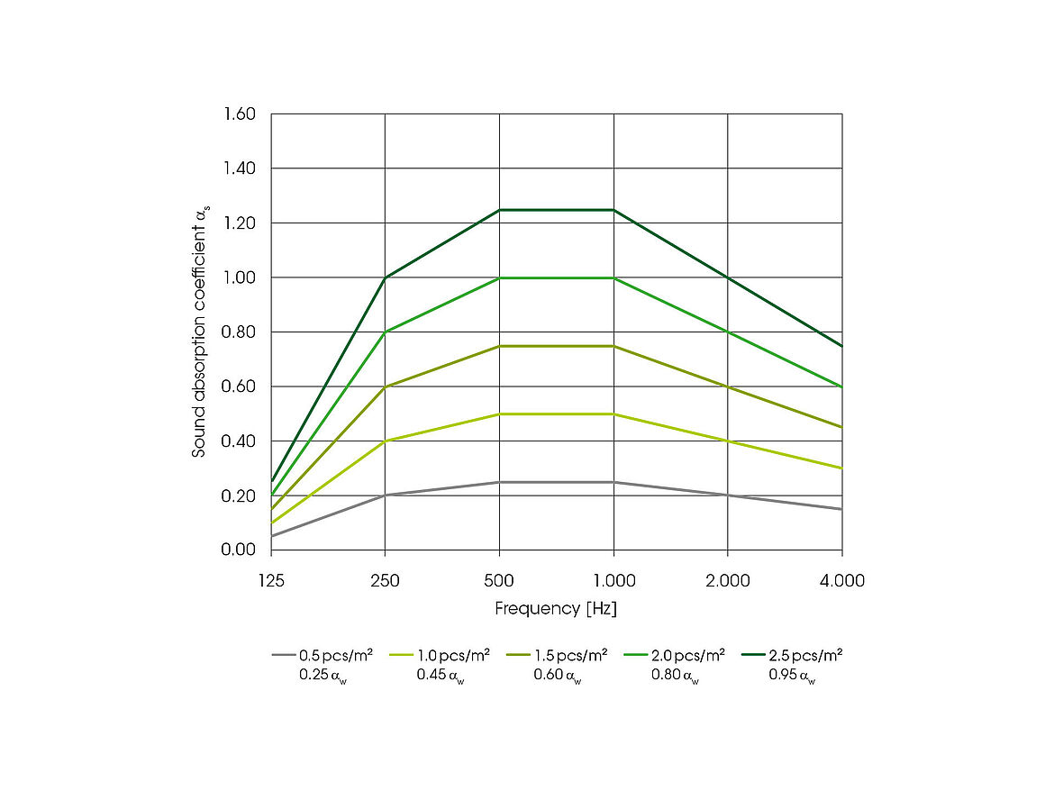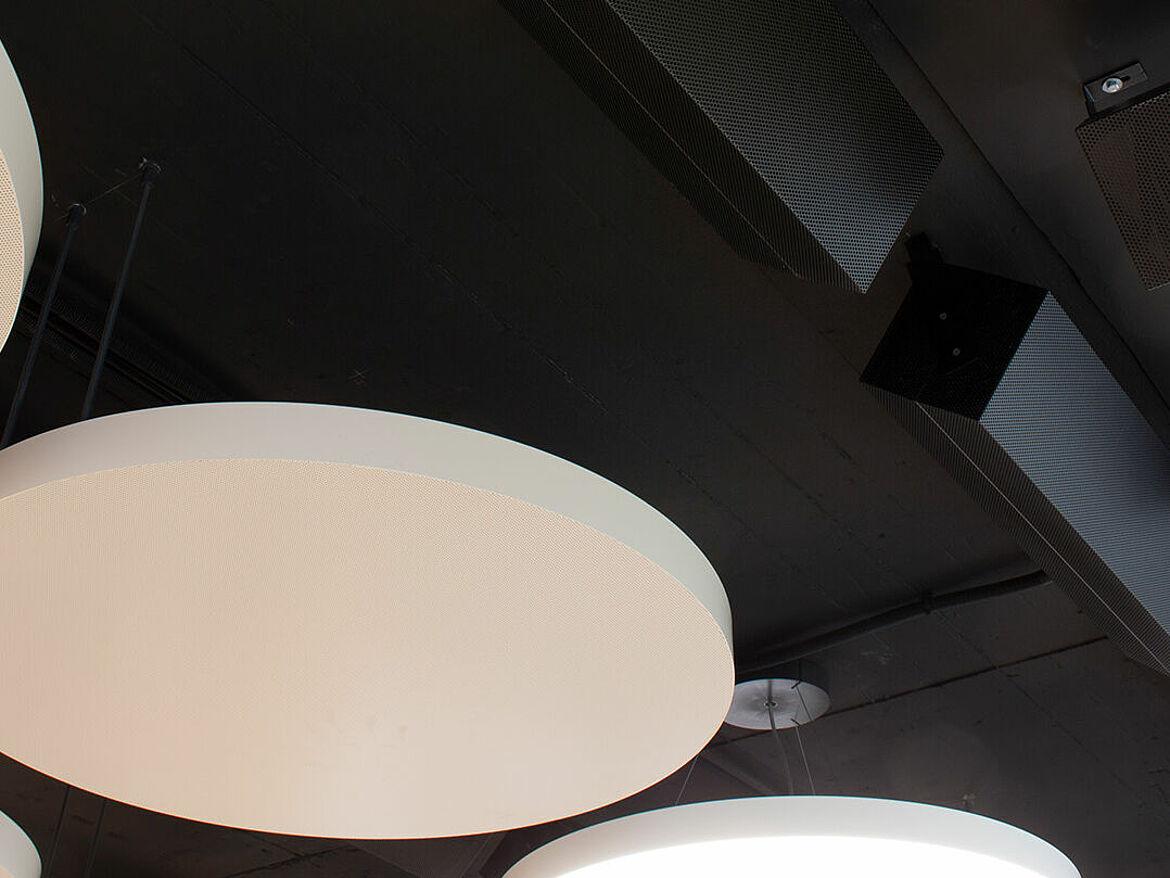 dur-SONIC CUBE was developed to fulfil acoustic requirements in rooms with open ceilings [for example: open cell ceilings, expanded metal ceilings, LOOP]. The attainable sound absorption effect depends on the density of the elements deployed. Due to the high absorbency of a single dur-SONIC CUBE element a good effect can already achieved at low densities. NRC-values of up to 0,85 can be obtained. Thereby a rigid arrangement of the elements is not necessary. The elements can be placed unobtrusively wherever there is room to be found in the ceiling void.