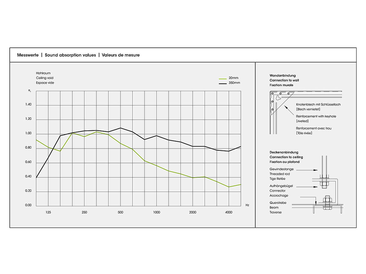 dur-SONIC QUAD is particularly effective in the low-frequency range and the panel resonator is ideally suited to use in spaces where intensive communication takes place, such as classrooms or conference rooms. In combination with absorbers that act in the medium and high frequency ranges, such as carpets and suspended ceilings, this resonator provides the finishing touch to acoustic effectiveness.