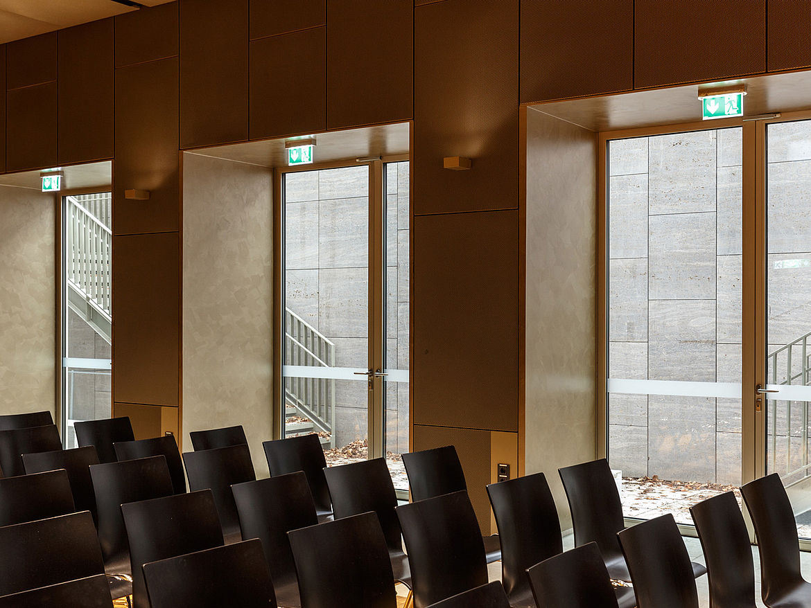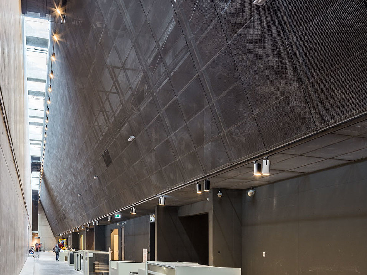 Versatile and flexible: The metal wall cladding WS4 is a hook-on system that is characterised by a great deal of design freedom. The variety of panel sizes, perforations, surfaces and joint patterns allows project-specific solutions. The classic wall cladding can be extended with optional functional properties such as acoustic effectiveness, dur-GRAPHICS printings at specific points or over a large area or it can be used as a magnetic board in the everyday work life.